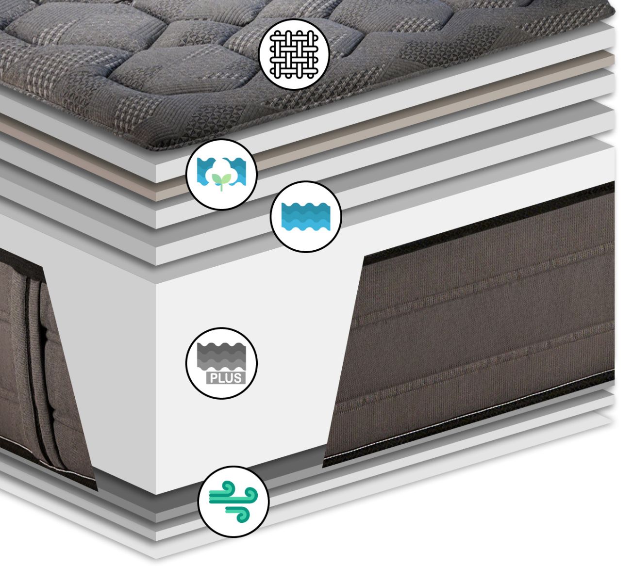 • Materiales de alta transpirabilidad para evitar acumulación de humedad en el colchón y proporcionar un descanso fresco y saludable