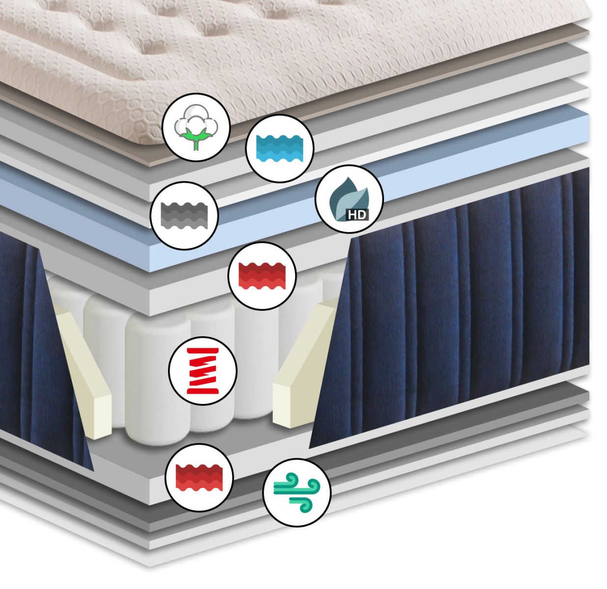 Su soporte de muelles ensacados de alta firmeza FirmSpring proporcionan una alta durabilidad, y una excelente transpirabilidad.