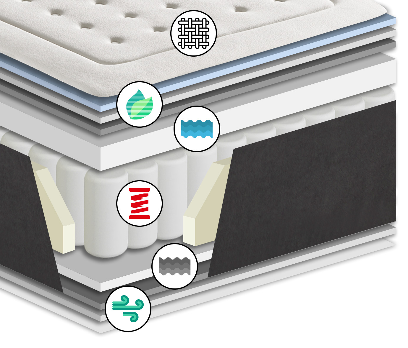 El soporte de este colchón es de muelles ensacados Springtech Firm, de alta calidad, durabilidad y firmeza.