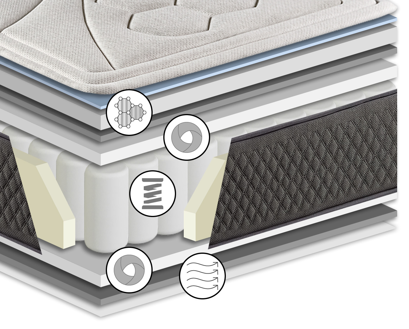 • 17 cm carcasa de muelles ensacados Springtech con carenado perimetral: Proporciona una firmeza óptima.
