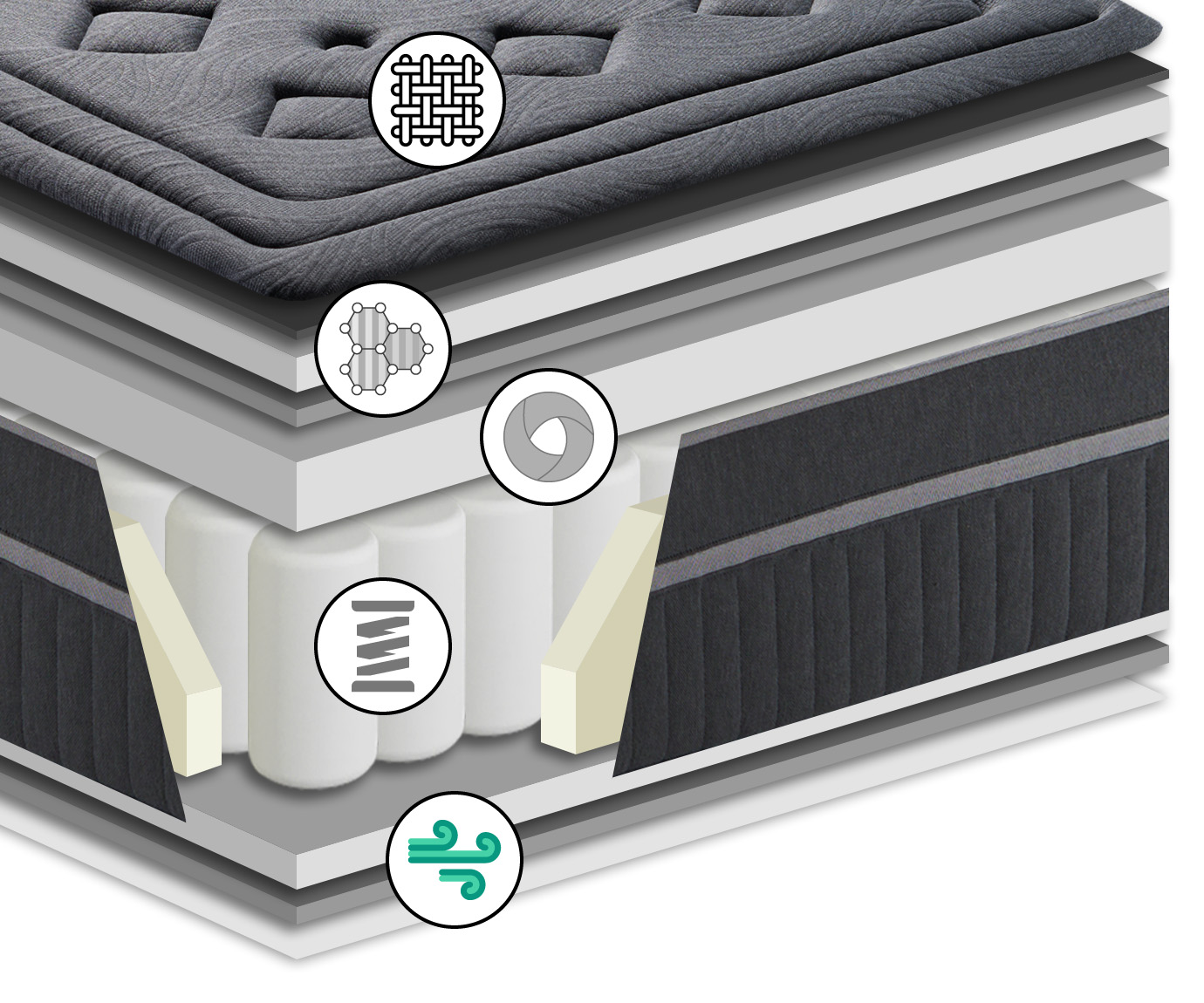 Su núcleo es una carcasa de muelles ensacados Springtech con box perimetral, que se adaptan a tu contorno corporal gracias a la independencia de sus de muelles individuales.