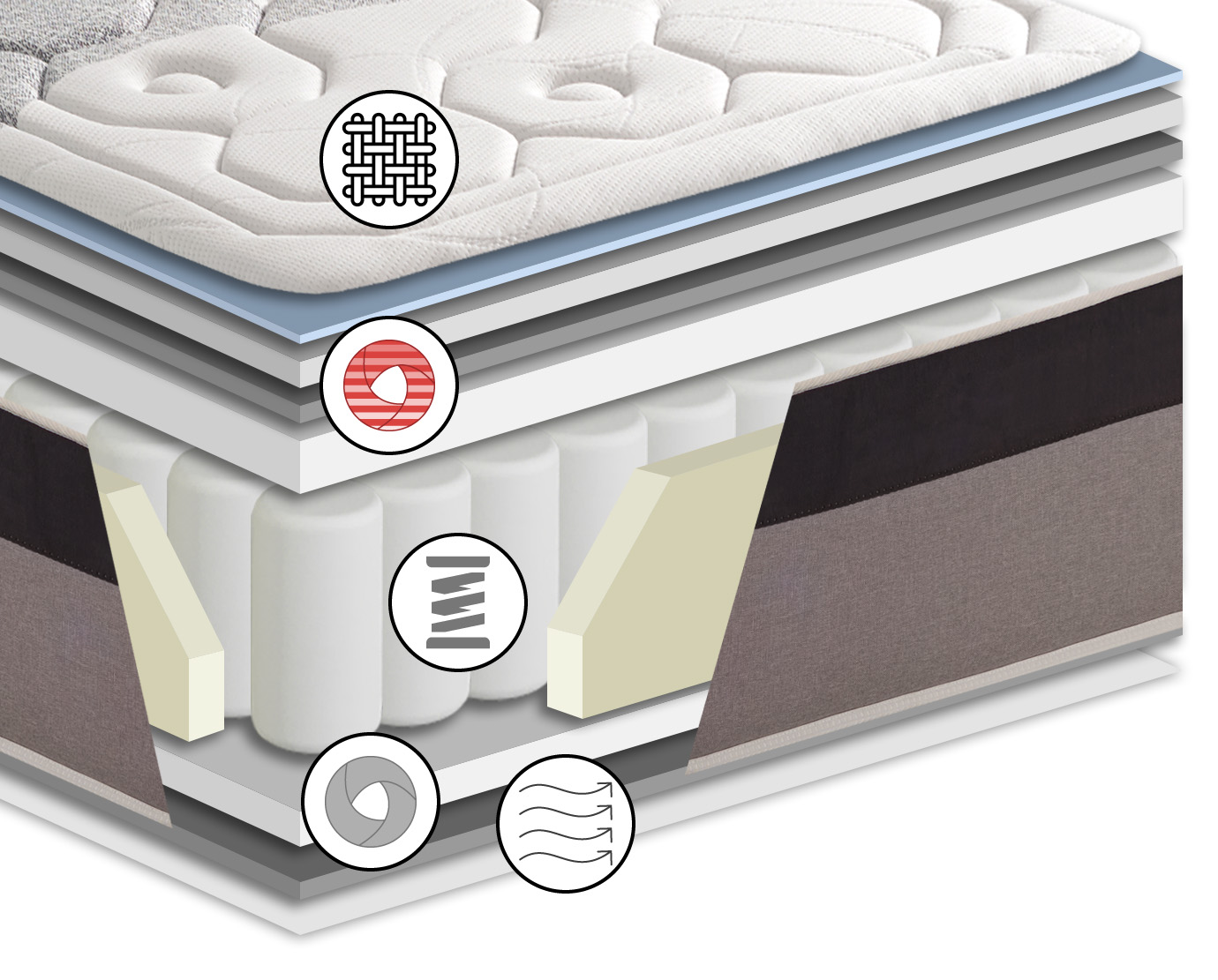 - 17 cm de Muelles ensacados Springtech: Soporte de muelles ensacados. Cuenta con un refuerzo perimetral de espuma firme para evitar hundimiento.