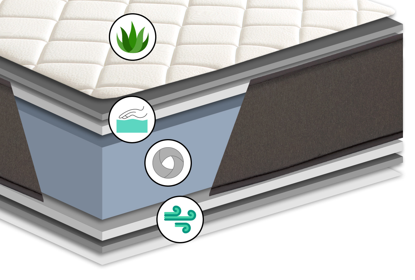 - Tejido elástico Stretch con tratamiento Aloe Vera: proporciona un extra de suavidad y mejora la calidad del sueño