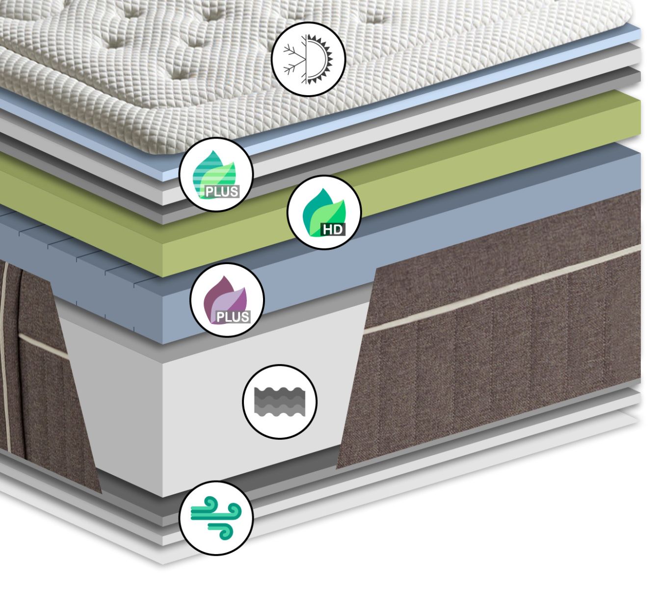 Regula la temperatura y aporta una acogida adaptable con soporte por zonas para un descanso óptimo.