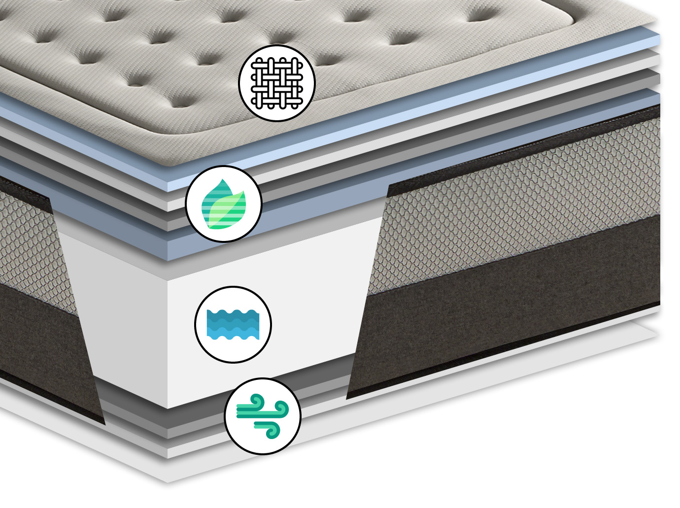 Este colchón cuenta con tejido Stretch de alta transpirabilidad, que junto con la tapa inferior AirCell System, facilita el paso del aire al interior del colchón y lo mantiene en condiciones higiénicas óptimas.