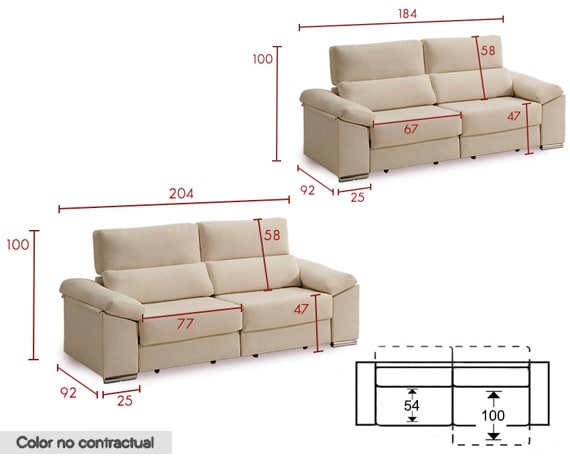Recomendación: Para la completa reclinación de los cabezales, poner el sofá a una distancia de 25 cm de la pared