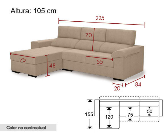 A continuación, puedes ver las medidas de la opción seleccionada. Todas las medidas las encontrarás también en el croquis del carrusel de imágenes. Teniendo en cuenta una variación de +/- 5 cm: